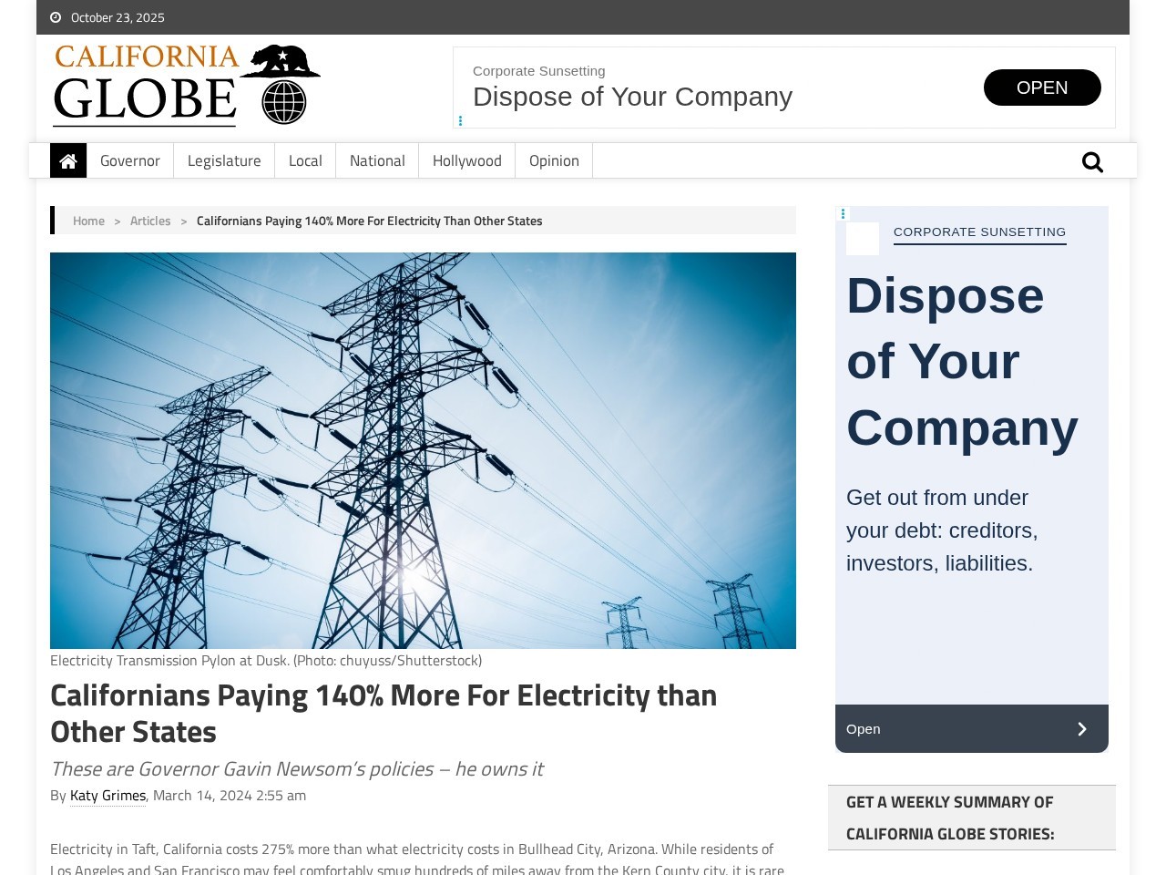 You're paying 140% more than oter states for energy. Blame Gavin.